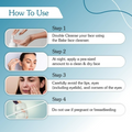 - Perform a double cleanse on your face using an appropriate Bake face cleanser. In the evening, apply a pea-sized amount to a clean & dry face, ensuring to avoid lips, eyes (including eyelids), and the corners of the eyes.