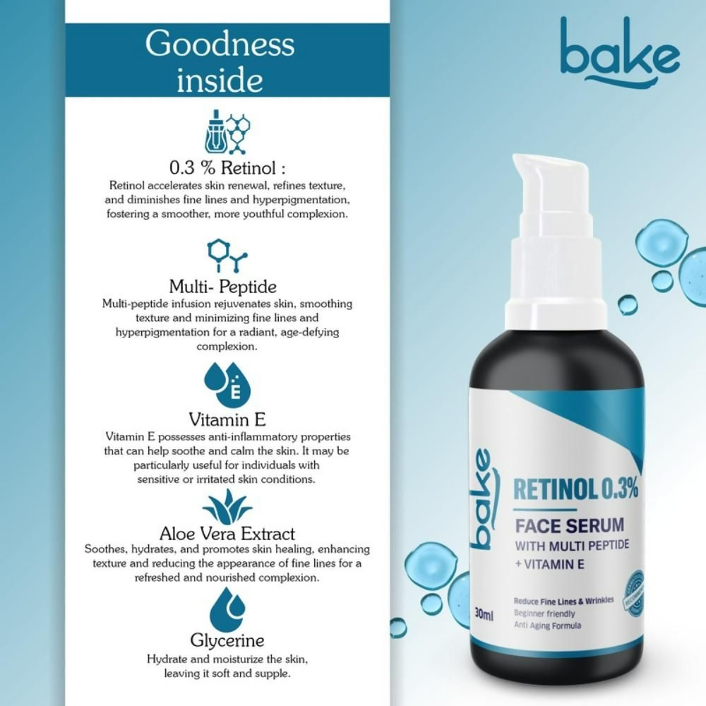 Bake 0.3% Retinol Beginner Friendly Face Serum With 2% Multi Peptide & Vitamin E