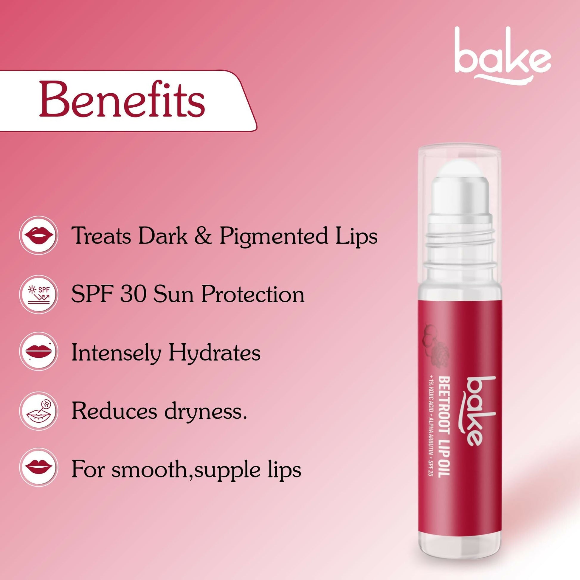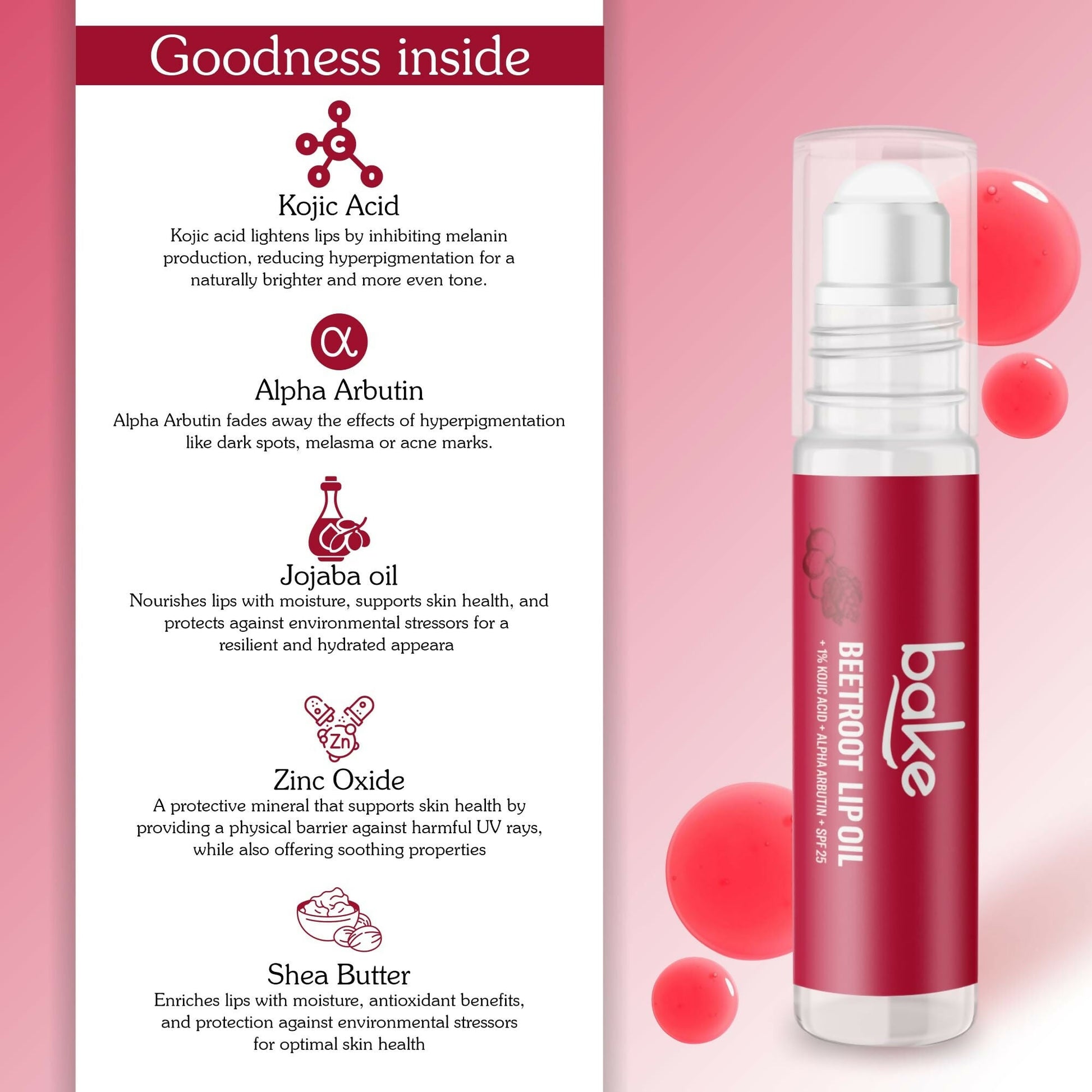 Bake 1% Kojic Acid Beetroot Tinted Lip Balm Oil for Dark & Pigmented Lips with SPF 25 & Alpha Arbutin