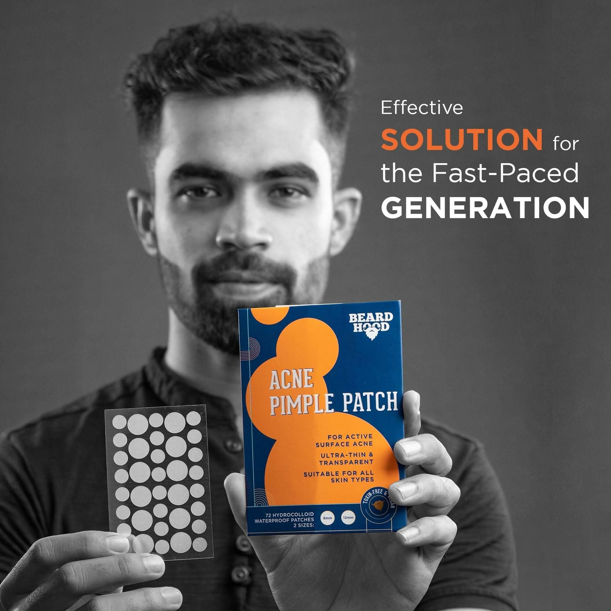 Beardhood Acne Pimple Patch Hydrocolloid Waterproof Patches For Active Surface Acne, Absorbs Pimple Overnight