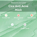 - The Cica Anti Acne Mask is abundant in antimicrobial and anti-inflammatory elements that calm irritated skin and combat acne. This mask effectively absorbs surplus oil and purifies pores by removing dirt and sebum, thereby minimizing acne.