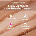 - Belora Paris Skinny Dip Natural Matte finish Compact - Achieve the perfect base to ensure your makeup stays flawless. True to its promise, Belora Paris Skinny Dip is infused with vitamin C, delivering a smooth matte finish that provides complete coverage while minimizing excess oil shine. It refines and softens the skin, enhancing its brightness. Consistent use of this compact will enhance your skin's radiance.