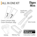 - Cream colorant 40g, Cream developer 40g, Applicator comb 1 pc, Mini comb, Gloves 1 pair & Instruction leaflet 1 pc.