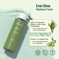 - Biocule's Ever Glow Radiance Toner is infused with 5 natural AHAs - Glycolic Acid, Lactic Acid, Citric Acid, Malic & Tartaric Acid, complemented by Vitamin C sourced from Kakadu Plum. This combination aids in gently exfoliating the skin, addressing minor skin flaws, and imparting a natural glow by accelerating cell renewal and regeneration.