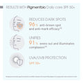 - Effortlessly enhances and safeguards, harmonizes and illuminates over time. Pigmentbio Daily Care SPF50+ incorporates Lumireveal Technology, inspired by dermatological reference treatments (such as Kligman’s Trio), which uncovers the natural radiance of your original skin tone.