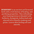 This invigorating, non-foaming lotion is infused with berberry, fenugreek, lodhra bark, and almond oil to effectively remove makeup and impurities. It leaves the skin feeling soft and velvety.