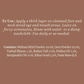 Apply a generous layer on a cleansed face and neck while avoiding the eye and mouth areas. Leave it on for 15-20 minutes, then rinse with water or a damp washcloth. Use daily or as required.