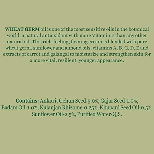 This luxurious, firming cream is infused with wheat germ, sunflower, and almond oils, alongside vitamins A, B, C, D, E, and extracts of carrot and galangal to hydrate and fortify skin, promoting a more vibrant, resilient, and youthful look.