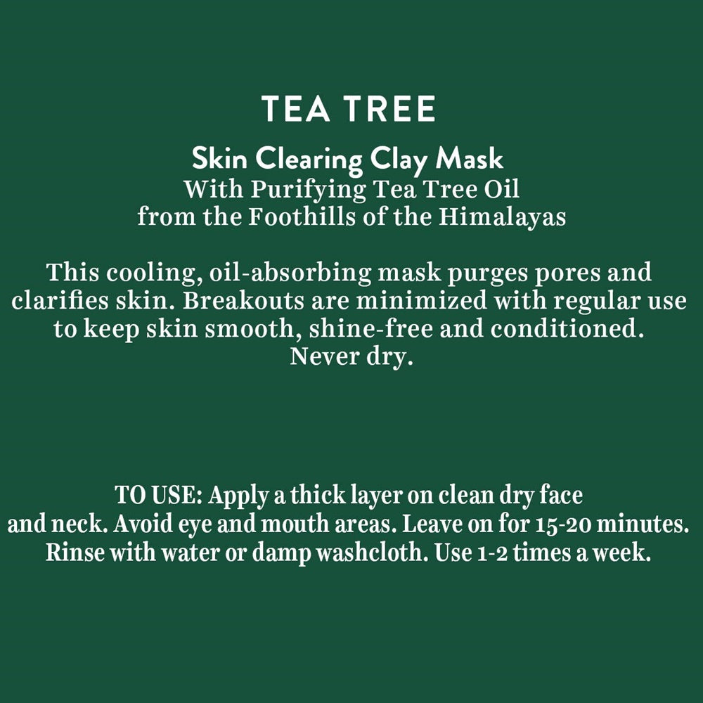 - Biotique Tea Tree Clay Mask incorporates purifying tea tree oil sourced from the serene foothills of the Himalayas