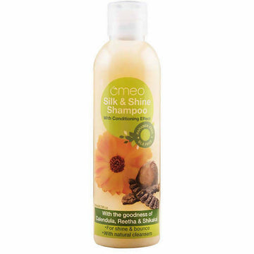 - Omeo Silk & Shine Shampoo gently cleans and smooths your hair. Infused with the advantages of natural herbal extracts like Calendula, Reetha, and Shikakai, it enhances the luster and radiance of your hair. It supports thicker and more resilient hair growth with a glossy finish. This shampoo is excellent for making hair silkier and more radiant.