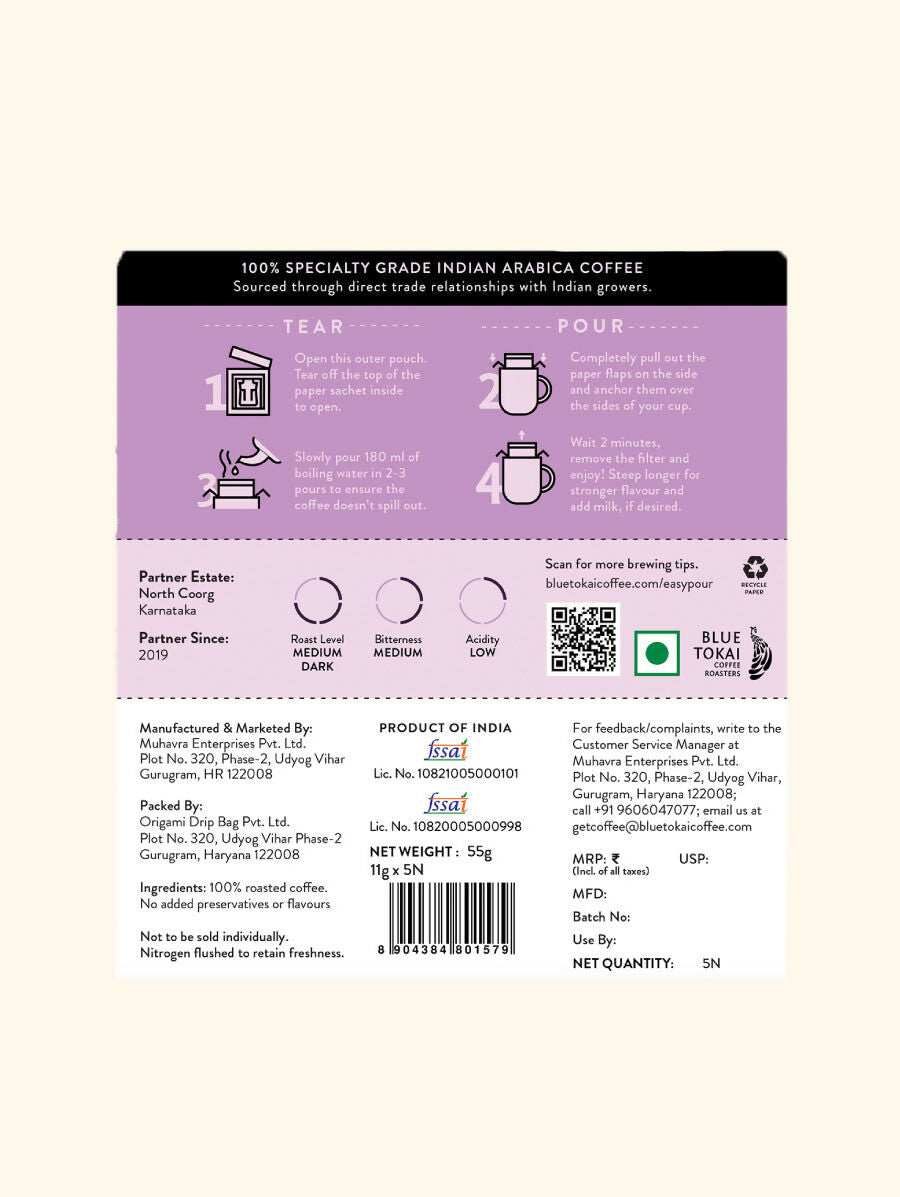 Blue Tokai Monsoon Malabar Medium-Dark Roast Easy Pour Sachets