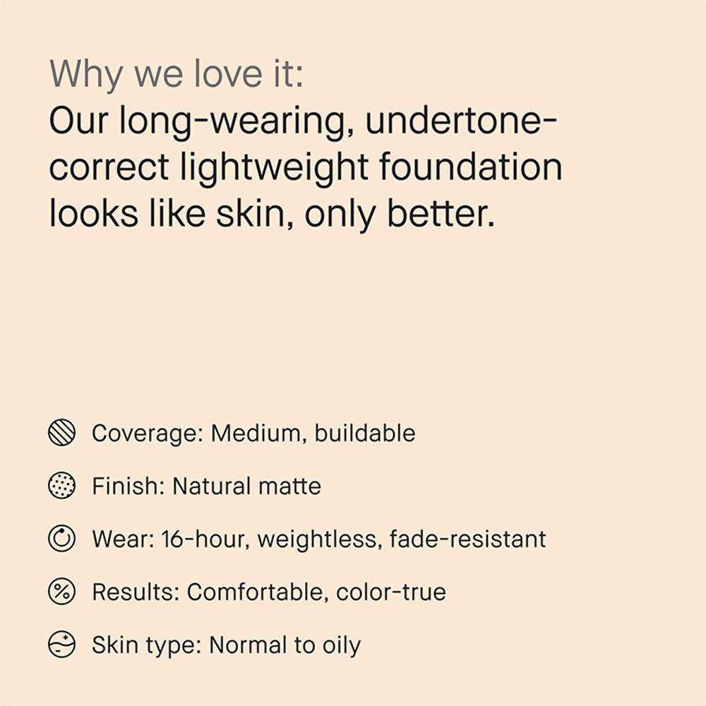 - Perfect: With the Full Coverage Face Brush, buff Skin Long-Wear Weightless Foundation SPF 15 onto the skin, beginning at the face's center and blending outward.