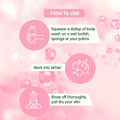 - Squeeze a dollop of shower gel onto a wet loofah, sponge, or your palms. Work into a rich lather. Rinse off thoroughly, and gently pat your skin dry.