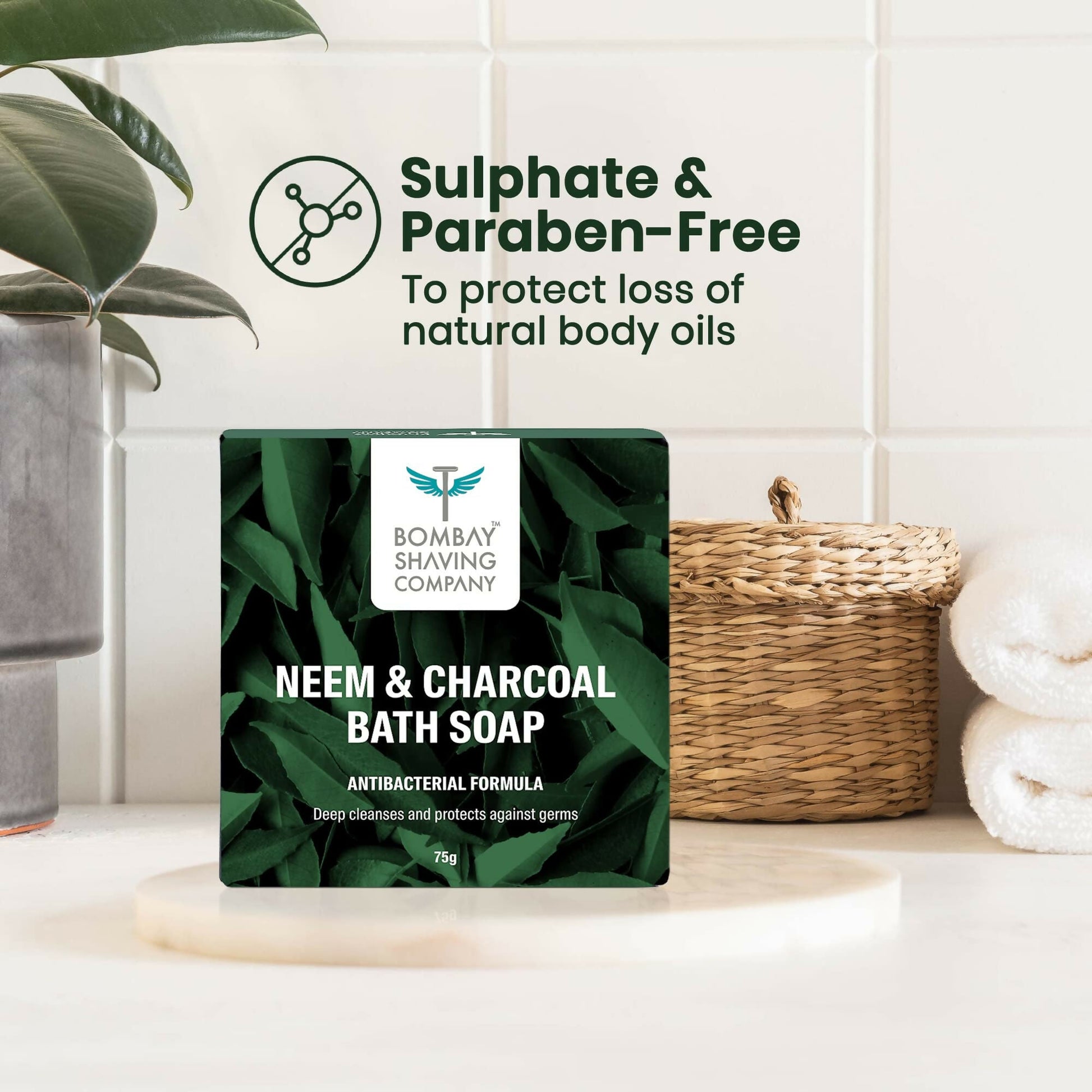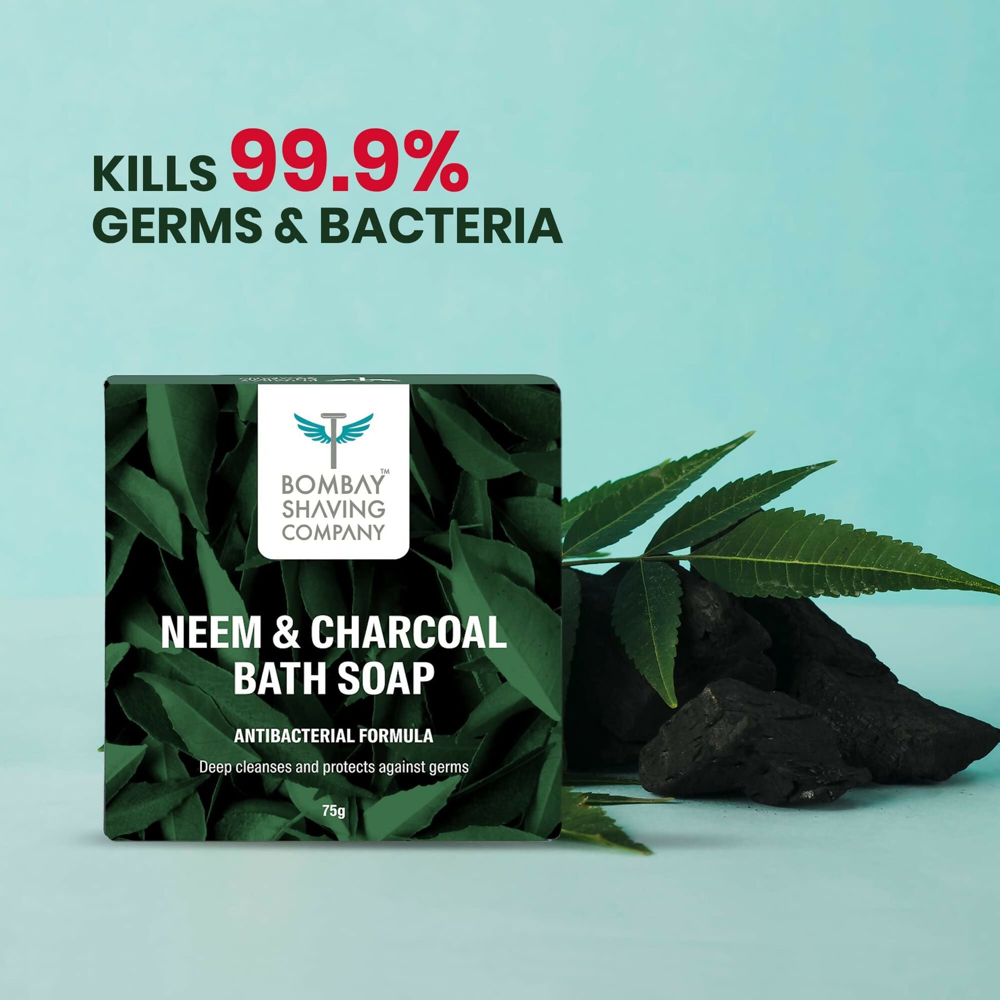 - Bid farewell to germs, bacteria, dirt, and harmful toxins with Bombay Shaving Company's Neem and Charcoal Bath Soap. Infused with the antibacterial benefits of Neem extracts and the deep-purifying strength of Activated Charcoal, it ensures your skin remains safeguarded against all undesirable elements.