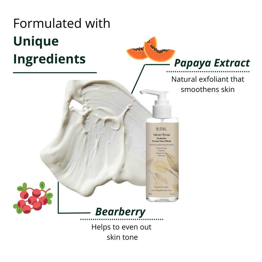 Botnal Velvet Rinse Probiotic Creme Face Wash with Colloidal Oats for Hydration