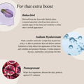 Experience simultaneous hydration, plumping, and balance for your skin. Infused with plant-derived components such as bakuchiol, a natural retinol substitute, sodium hyaluronate, and pomegranate, each drop nourishes your skin. The formulation is exceedingly gentle yet effectively revitalizes, harmonizes, and moisturizes your skin with remarkable potency. An indulgent delight for your complexion.