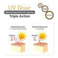 - Experience the protective benefits of Brinton UV Doux Gold Silicone Water Resistant & Non-greasy sunscreen gel SPF 50 PA++, enhanced with Titanium Oxide and Zinc Oxide to form a shield of antioxidants that helps prevent skin damage.