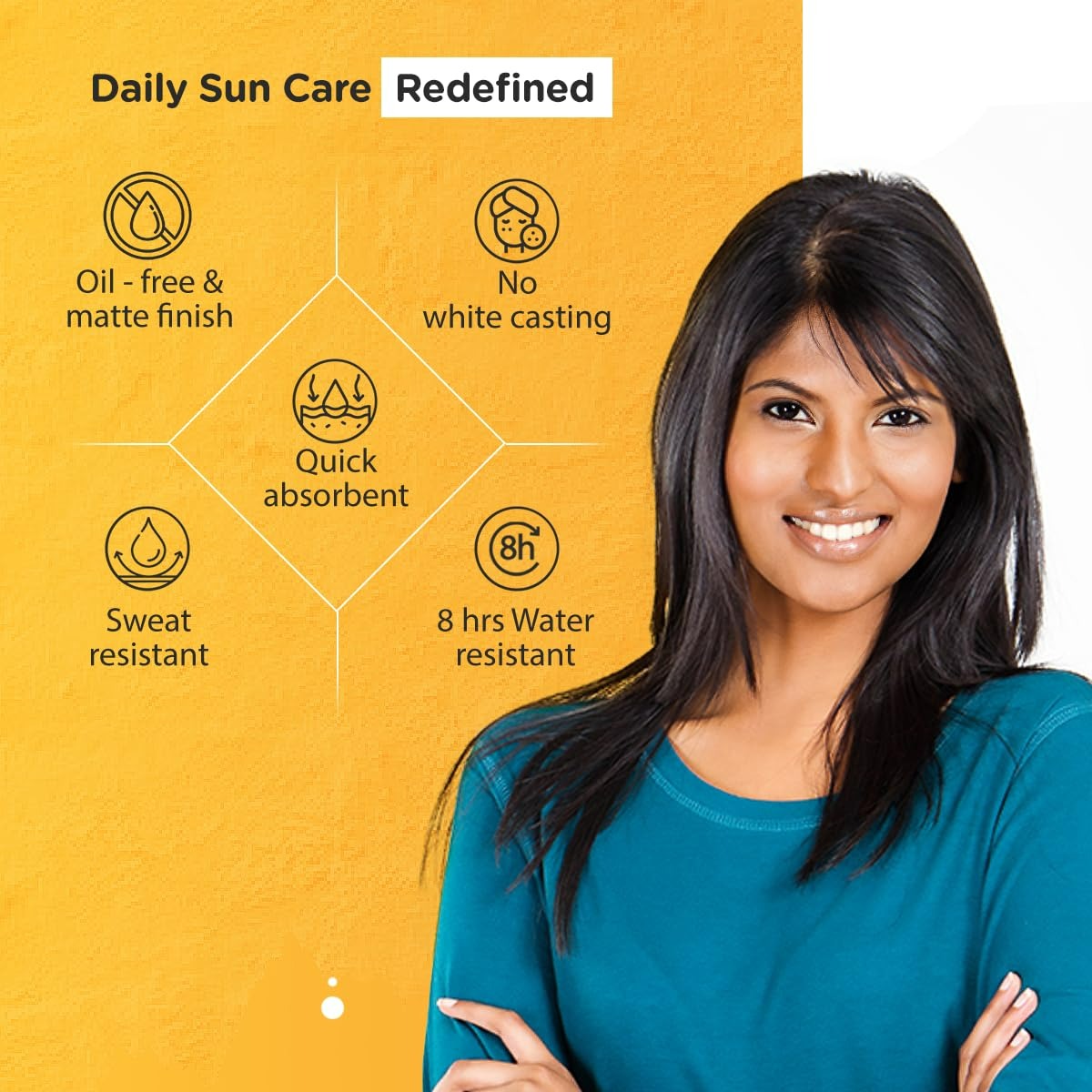 - Infused with Reliable UV filters: Shields against both UVA & UVB rays by obstructing 98% of UVB rays with an SPF 50, PA+++, ensuring maximum sun protection.