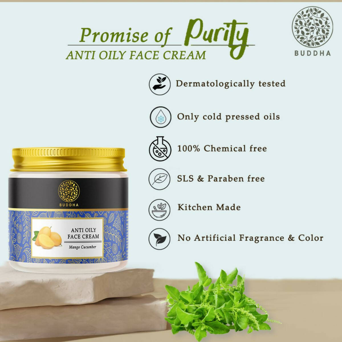 Benefits: Buddha Natural Anti Oily Face Cream contributes to: