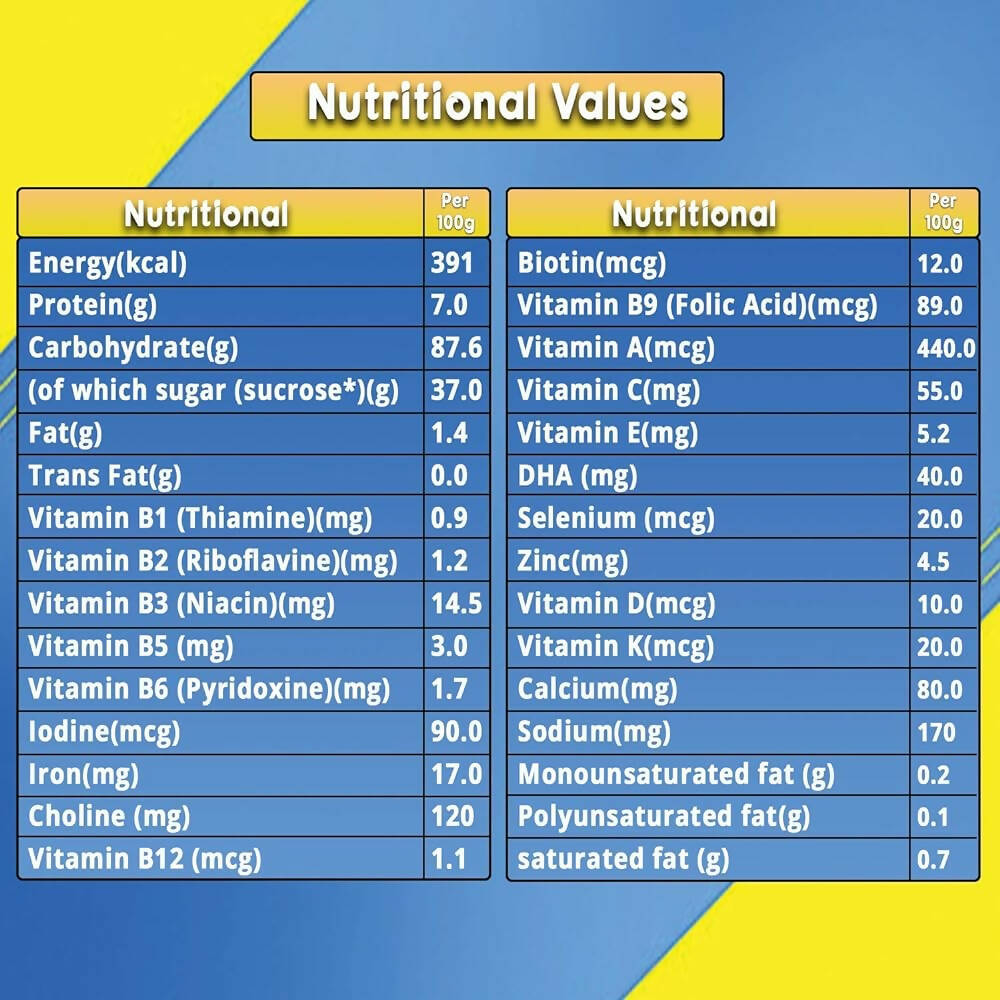 - Cadbury Bournvita Lil Champs (Cereal Based Beverage Mix) is a health drink mix that is formulated especially for small children in the age group of 3-5 years. Added with essential vitamins and minerals like Vitamin A, Vitamin B1, B2, B3, B5, B6, B12, Biotin, Folic Acid, Vitamin C, Vitamin D, Vitamin E, Zinc, Iron, Iodine, Selenium, Choline which are known to help in physical growth, brain development and support the immune system in kids. Formulated with 13 vitamins and 4 minerals, this chocolate drink helps in providing high energy and nutrients to the child’s diet. Give your child a head start with Cadbury Bournvita Lil Champs, ensuring their holistic development and a healthy foundation for the years ahead.