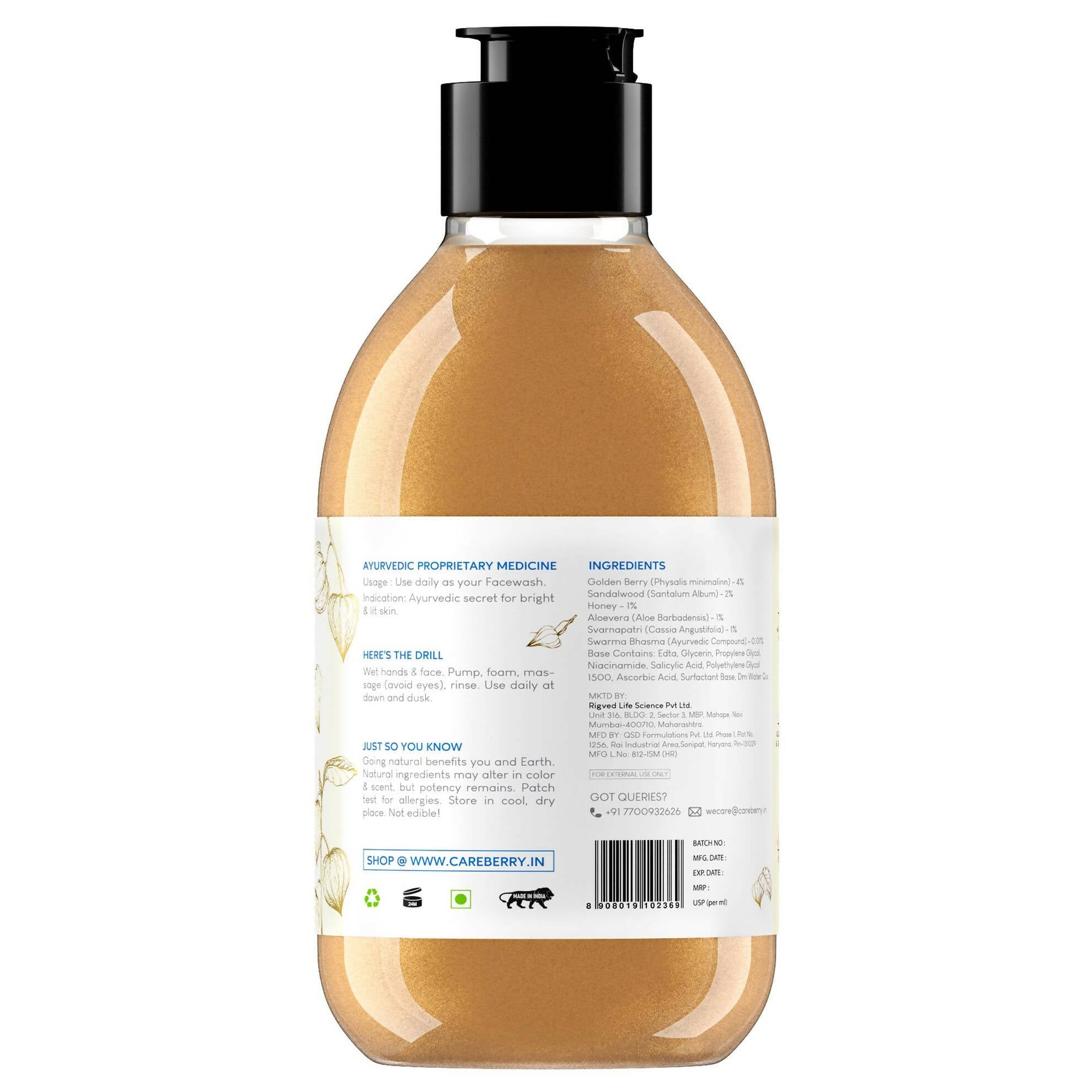 Certified Quality: AYUSH and WHO GMP certifications ensure the superior quality and authenticity of our body wash. You can trust it to meet your skincare needs.