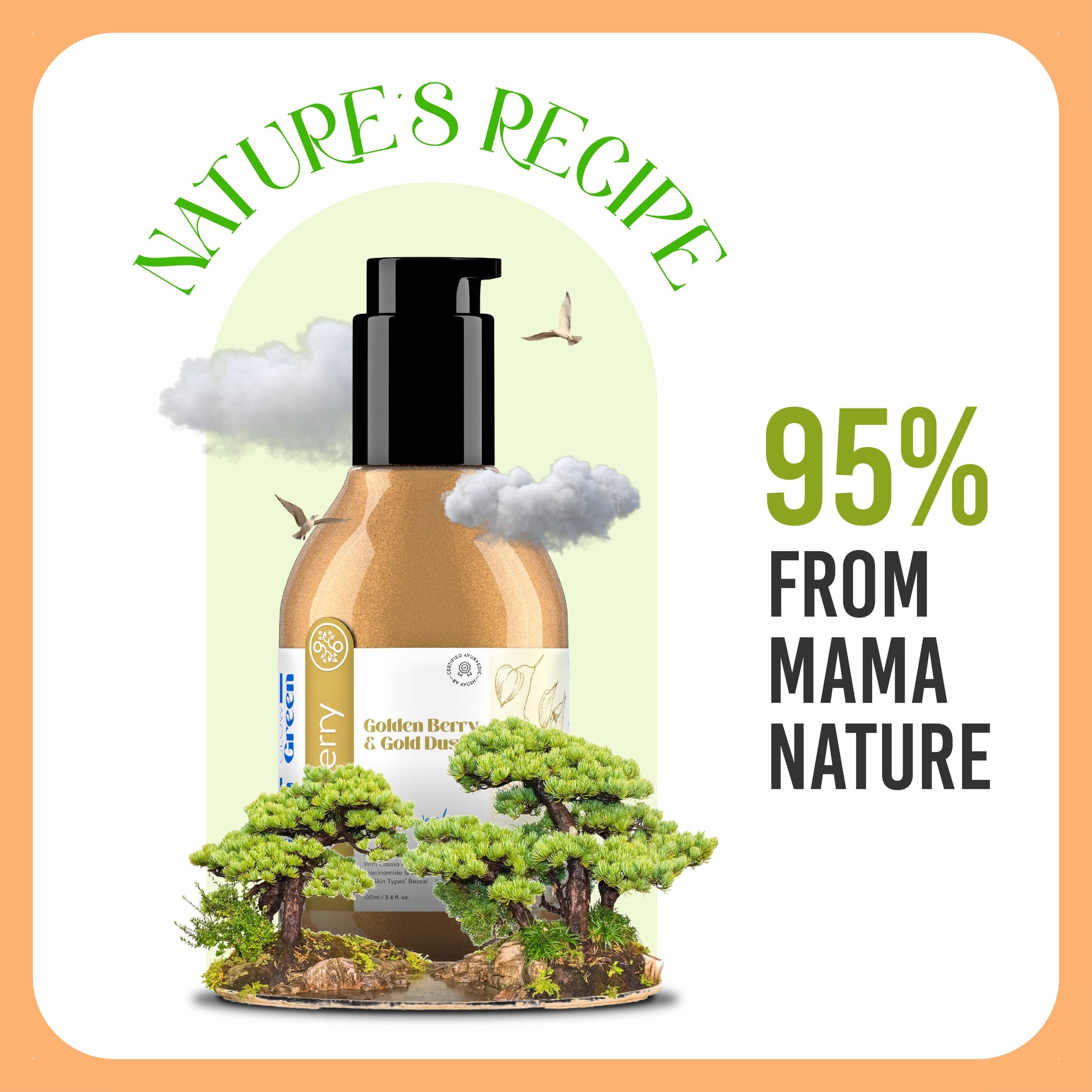 Enchanting Blend: Golden Berry, Gold Dust, Honey, Aloe Vera, and a medley of fruits – all united in one bottle for the ultimate skincare celebration.