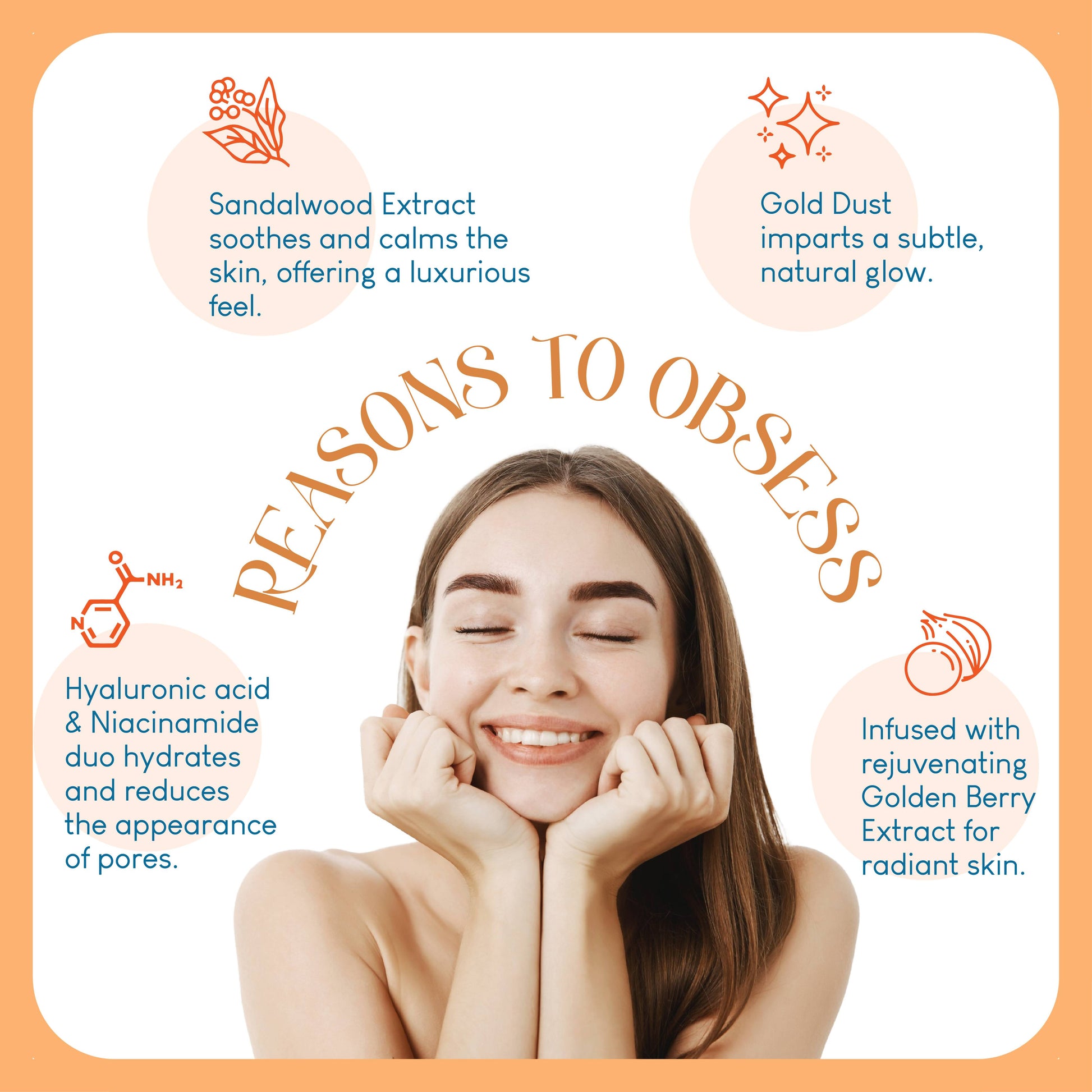 Ingredients: Golden Berry Extract, Gold Dust, Honey, Sandalwood Extract, Aloe Vera Extract, Mixed Fruit Extract, Glycerin, Salicylic Acid, Hyaluronic Acid, Ascorbic Acid, Niacinamide, and more.