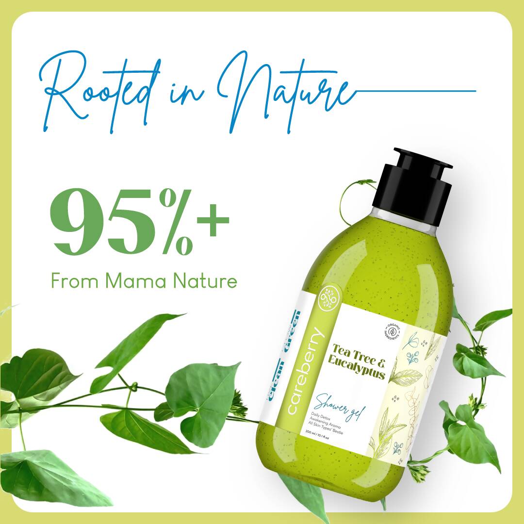 - Explore Careberry's Tea Tree & Eucalyptus Oil Active Shower Gel, an Ayurvedic concoction blending Tea Tree Oil, Eucalyptus Oil, Aloe Vera, Argan Oil, Pomegranate, and Mango extracts to gently purify and pamper your skin.