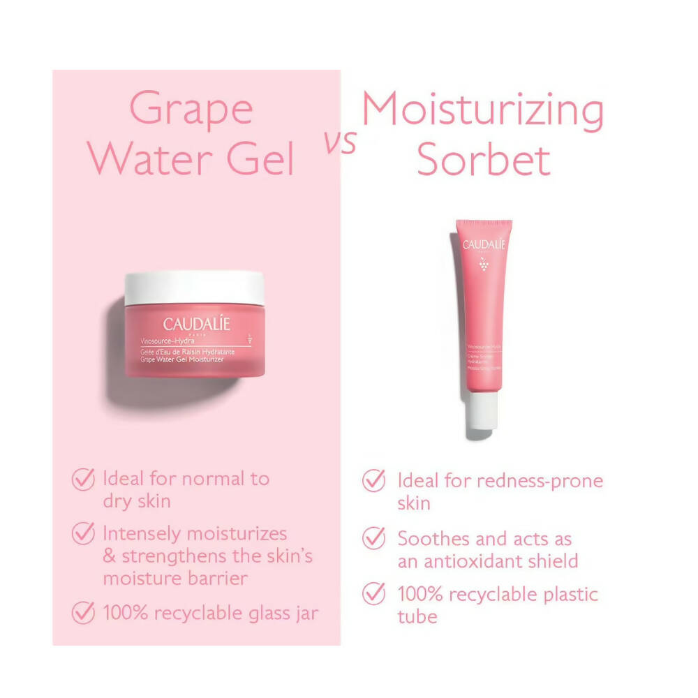 - The Vinosource Moisturizing Sorbet revitalizes the skin's moisture levels and fortifies it to diminish sensitivity. Skin feels immediately calmed and hydrated, while redness is minimized. For enduring comfort, incorporate into your daily routine.