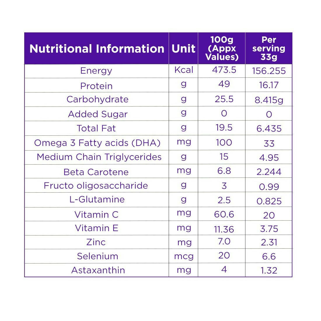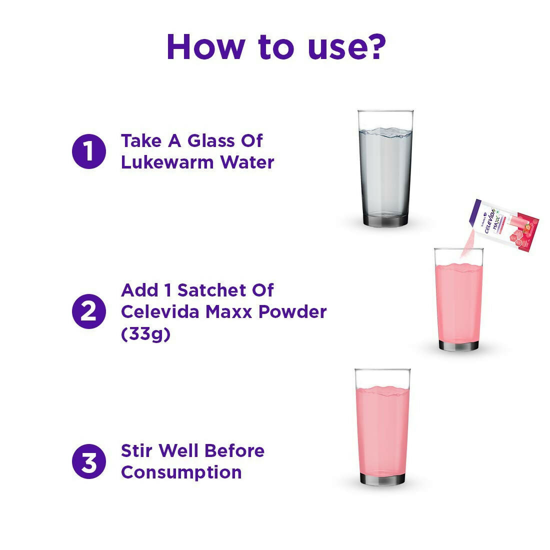 - Add 1 sachet (33gm powder) in 200 ml of water/milk & stir well before drinking (2 serving daily)
