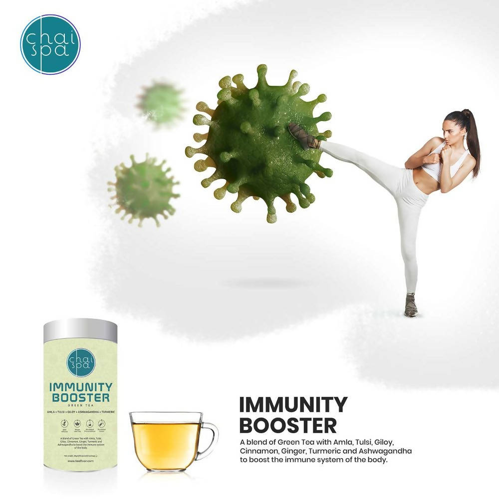 This Immunity Booster tea bag is a harmonious fusion of Green tea with amla, Tulsi, giloy, Cinnamon, Ginger, Turmeric, and Ashwagandha, among other ingredients, renowned for enhancing the body's immune defenses.