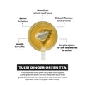 This harmoniously blended herbal green tea is crafted from premium green tea leaves and tulsi leaves, complemented by pieces of dried ginger freshly obtained from farms. Offering a unique spin on traditional ayurvedic herbs, it represents an excellent choice for health enthusiasts.