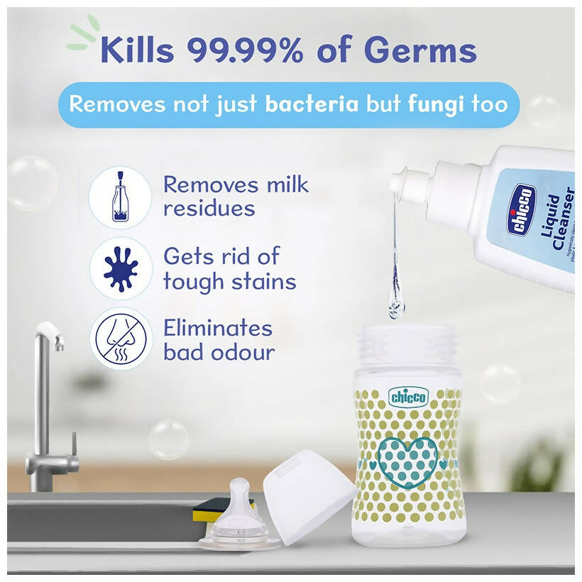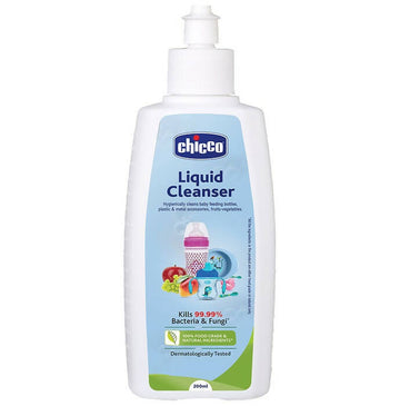 About the Product:Chicco Liquid Cleanser is meticulously crafted to ensure hygienic and safe purification of essential baby feeding items such as feeding bottles, nipples, sipper cups, pacifiers, gum massagers, and both plastic and metal feeding tools. It is also suitable for cleaning fruits and vegetables. Free from parabens, fragrances, and artificial colors, it is the ideal choice for maintaining your baby's health and safety. This cleanser effectively removes unpleasant odors and residues from surfaces.