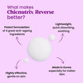 - Experience the transformative power of Chicnutrix Reverse Face Serum, an advanced anti-aging solution enriched with hydrolyzed marine collagen peptides, retinyl palmitate, a triple Hyaluronic Acid Complex, and arginine. Hydrolyzed marine collagen peptides are meticulously broken down for enhanced skin absorption, offering improved elasticity, hydration, and firmness while addressing fine lines and wrinkles by replenishing lost collagen. Retinyl palmitate, a gentler and more stable predecessor to retinol, transforms upon application into retinol and further into the potent retinoic acid with the help of skin enzymes. This process accelerates skin cell renewal for a smoother, more even texture while simultaneously boosting collagen synthesis in deeper layers to combat wrinkles. Arginine is acclaimed for its anti-aging properties, diminishing fine lines and wrinkles by protecting collagen and elastic fibers from damage and degradation, resulting in a firmer, plumper, and smoother complexion. The Triple HA Complex, composed of hyaluronic acid in high, medium, and low molecular weights, deeply hydrates and moisturizes the skin.