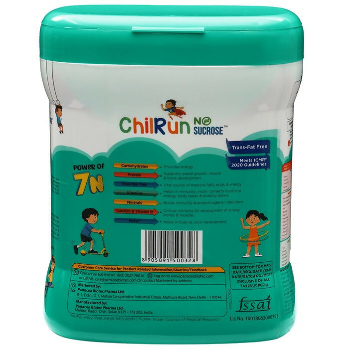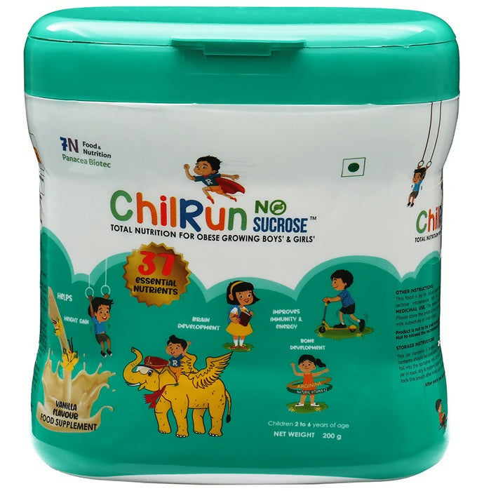 - Chilrun Powder is a supplement for your kid 2 years and above. It is designed to supplement the nutritional needs of your children and help support their growth and development. The key nutrients include carbohydrates, proteins, fats, vitamins, minerals, FOS and other nutrients (choline, arginine, taurine, l carnitine, inositol) which exemplifies the power of 7N. This is specifically designed for those parents who are sugar-conscious and who would like to regulate the (common sugar) consumption at an early age.