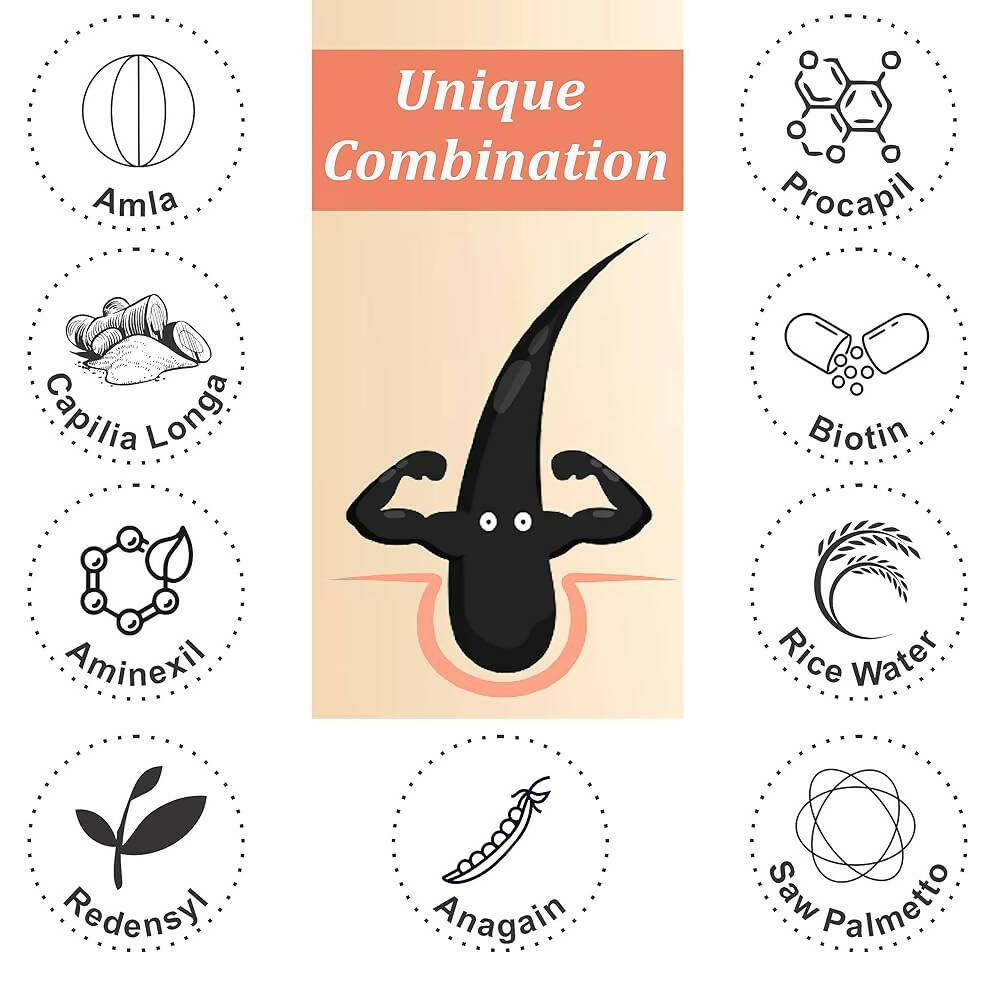 - The ClearCut Hair Growth Serum is formulated with Procapil 3%, Redensyl 3%, Anagain 3%, Aminexil 1%, Capilia longa, Rice water, Amla Extract, Biotin, and Saw Palmetto Extract.