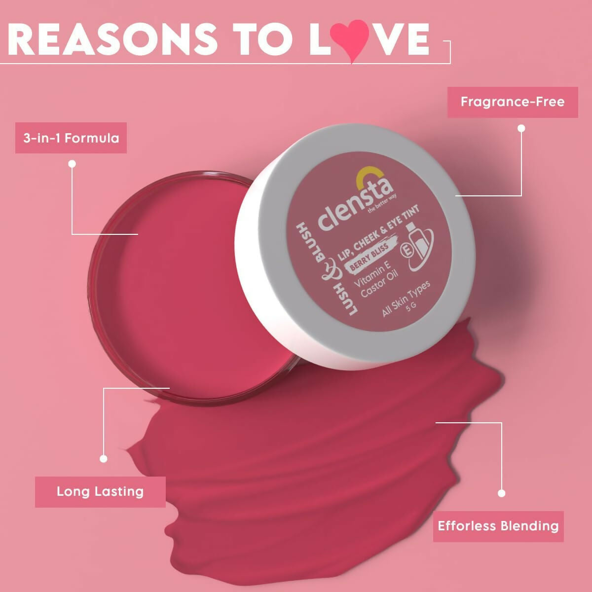 Clensta Lip Cheek Tint - Berry Bliss with Goodness of Vitamin E & Castor Oil