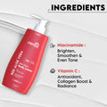 - The Skin Glow Body Lotion is indispensable for complete skincare, crafted with Vitamin C, Niacinamide, and Red Aloe Vera to enhance skin texture and radiance.