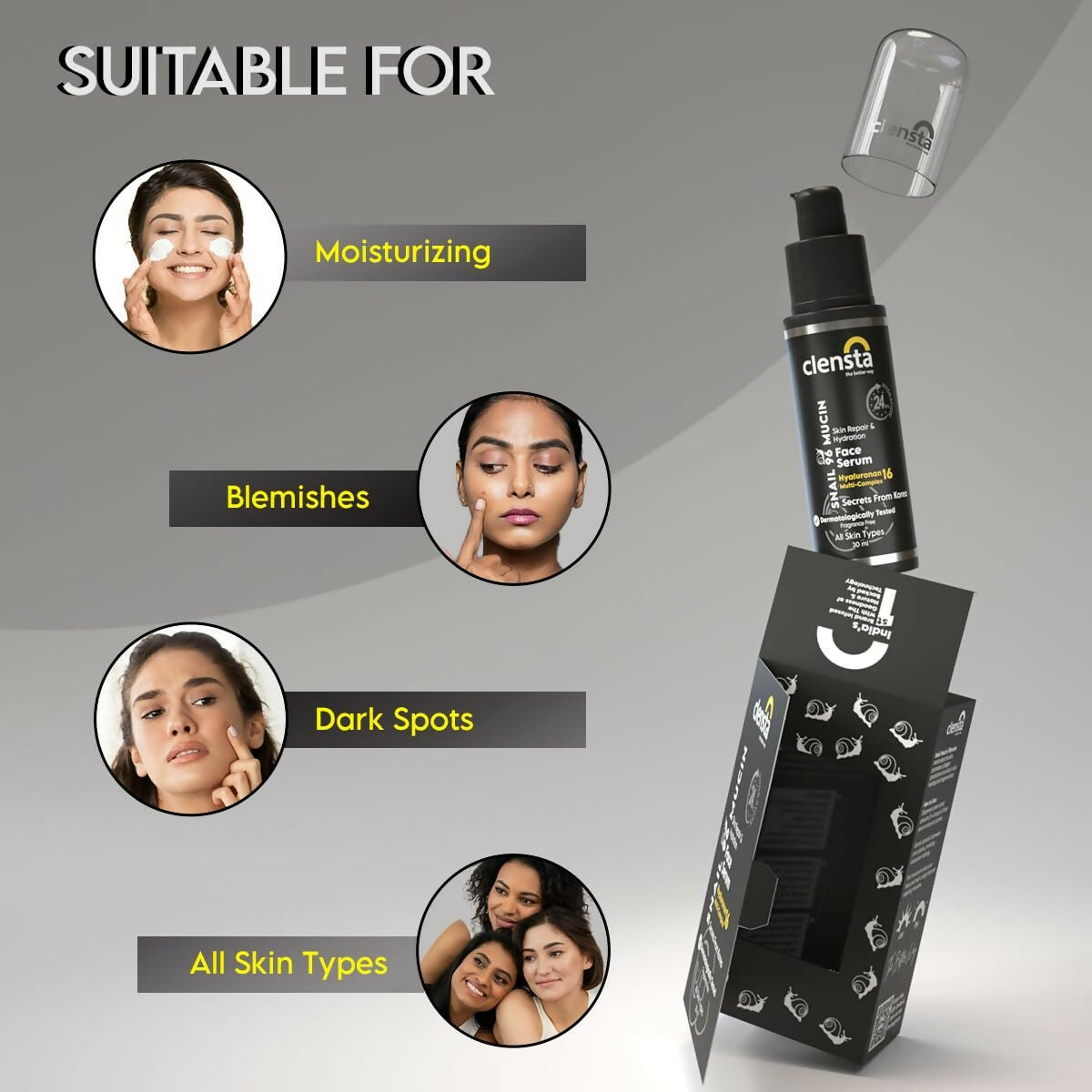 About the Product:- Intense Moisturization: Crafted with snail mucin, proteins, and hyaluronic acid, this serum profoundly hydrates the skin, leaving it supple and nourished.