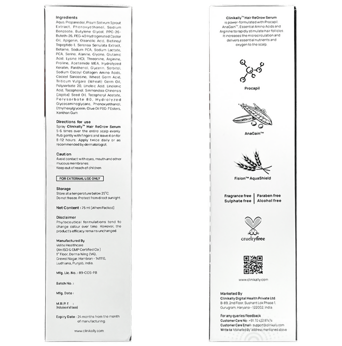 Clinikally Hair Regrow Serum is expertly crafted with Procapil, AnaGain, vital amino acids, and arginine, which invigorate hair follicles. This serum enhances microcirculation and supplies crucial nutrients and oxygen to the scalp.