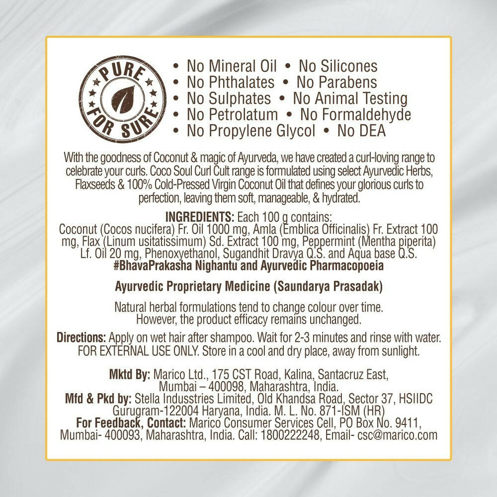 About the product:- Harnessing the benefits of Coconut and the wonders of Ayurveda, our curl-loving collection is crafted to honor your curls. The Coco Soul Curl Cult line is designed with select Ayurvedic Herbs, Flaxseeds, and Virgin Coconut Oil to enhance your stunning curls flawlessly, leaving them silky, manageable, and moisturized.