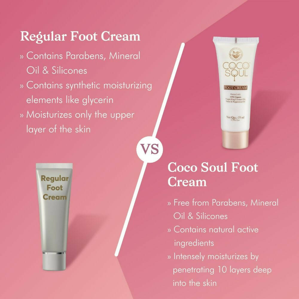 Experience the rejuvenating power of Coco Soul foot cream, infused with the timeless knowledge of Ayurveda, the richness of Virgin King Coconut Oil, and the invigorating essence of Neem and Peppermint! Coco Soul's Foot Cream is indeed a marvel in a tube. It fulfills all your foot care needs. The potent ingredients, sourced from ancient Ayurveda, delve deep into your skin to comfort and repair cracks, giving you revitalized feet. Embrace this foot care cream consistently to lavish care on your feet.