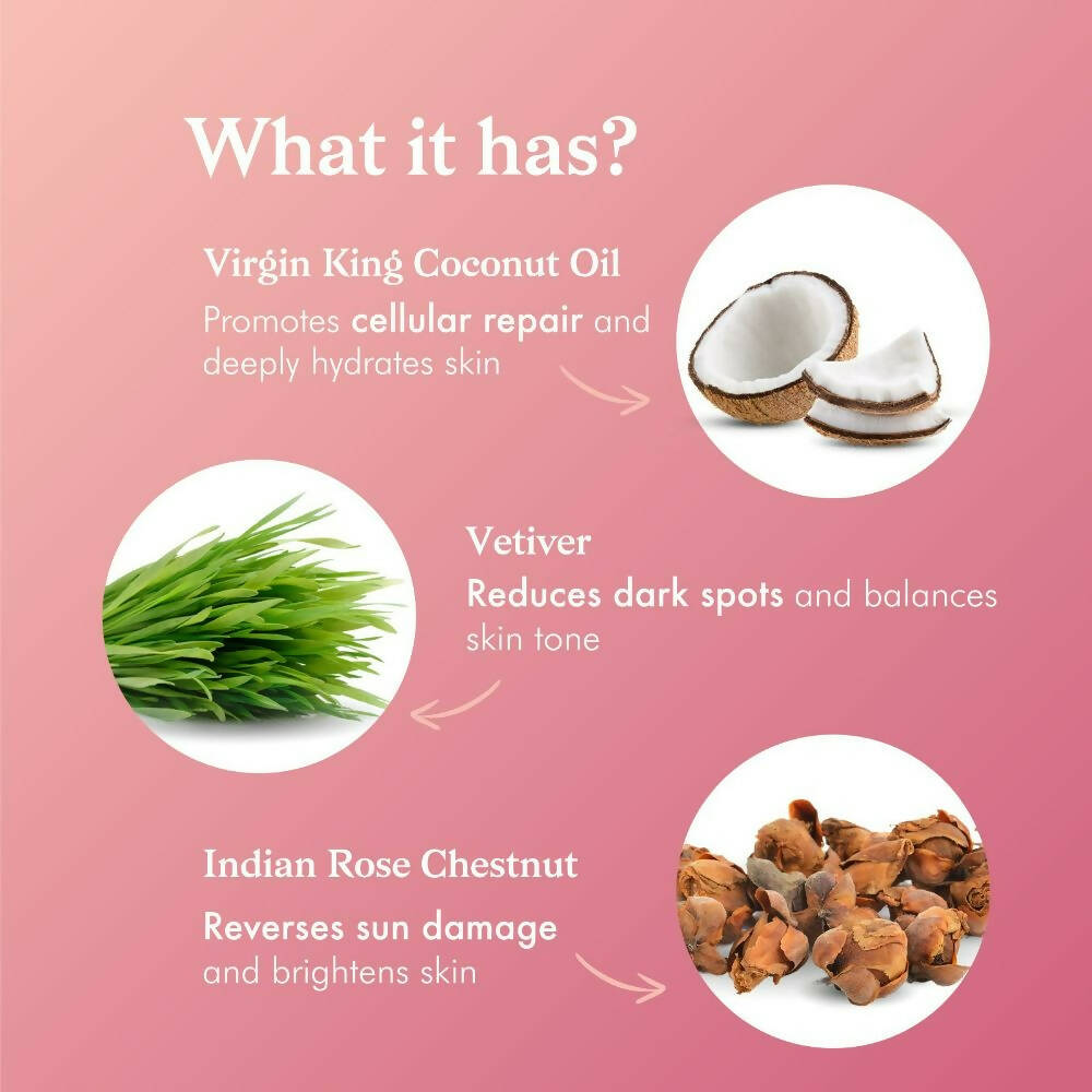 About the product:Created with the timeless wisdom of Ayurveda, the Coco Soul hand and nail cream combines the nourishing properties of Virgin King Coconut Oil with the enchanting essence of Vetiver and Sandalwood. This soothing and rapidly absorbing formula will transform your hands into a soft and velvety dream. Crafted with virgin king coconut oil and powerful Ayurvedic herbs, this hand care cream addresses the often-neglected hands and feet, which are the first to reveal signs of aging, ensuring they remain supple and well-hydrated.