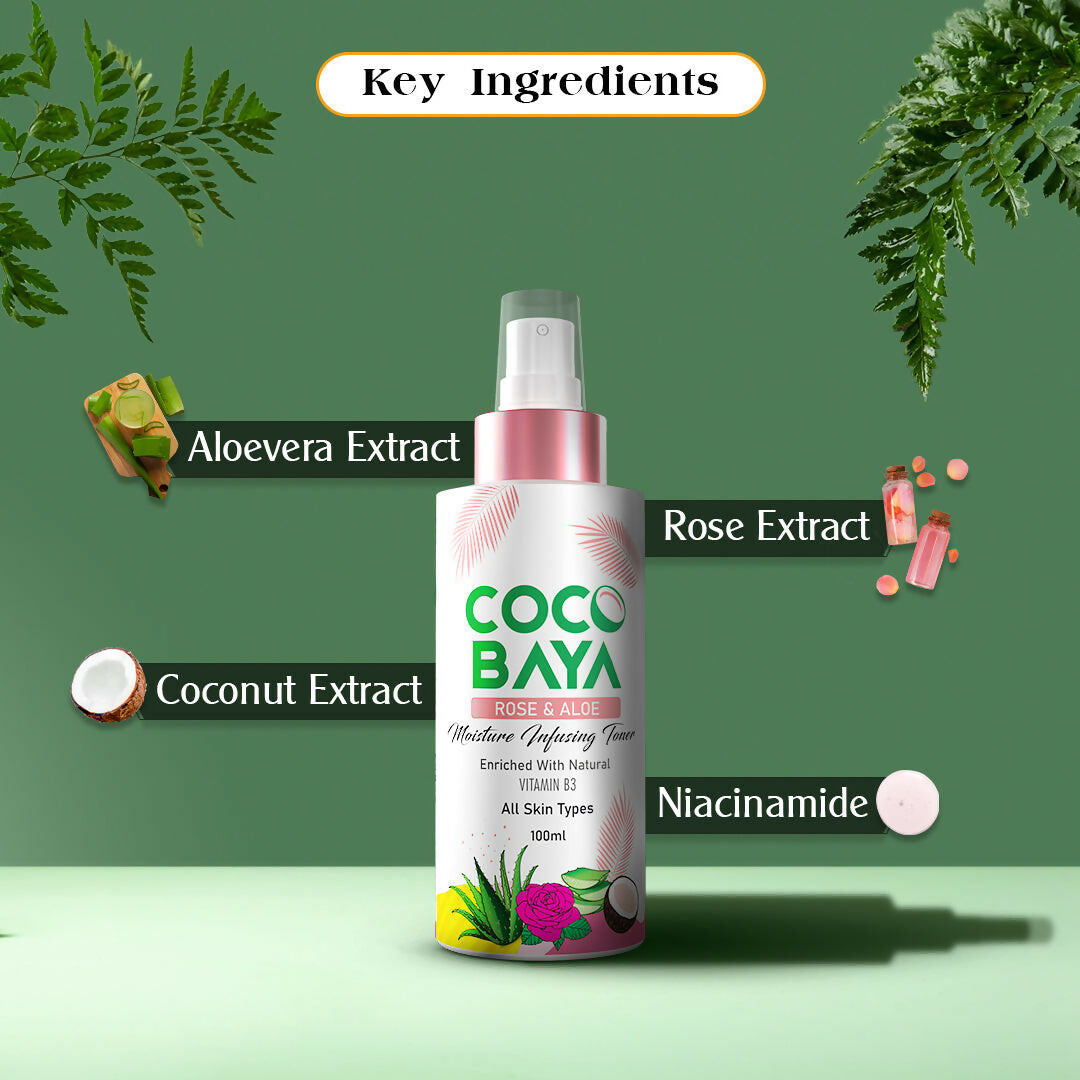 - Featuring rose and coconut extracts, this luxurious facial toner is further enhanced by niacinamide, which bestows a radiant glow upon your complexion.