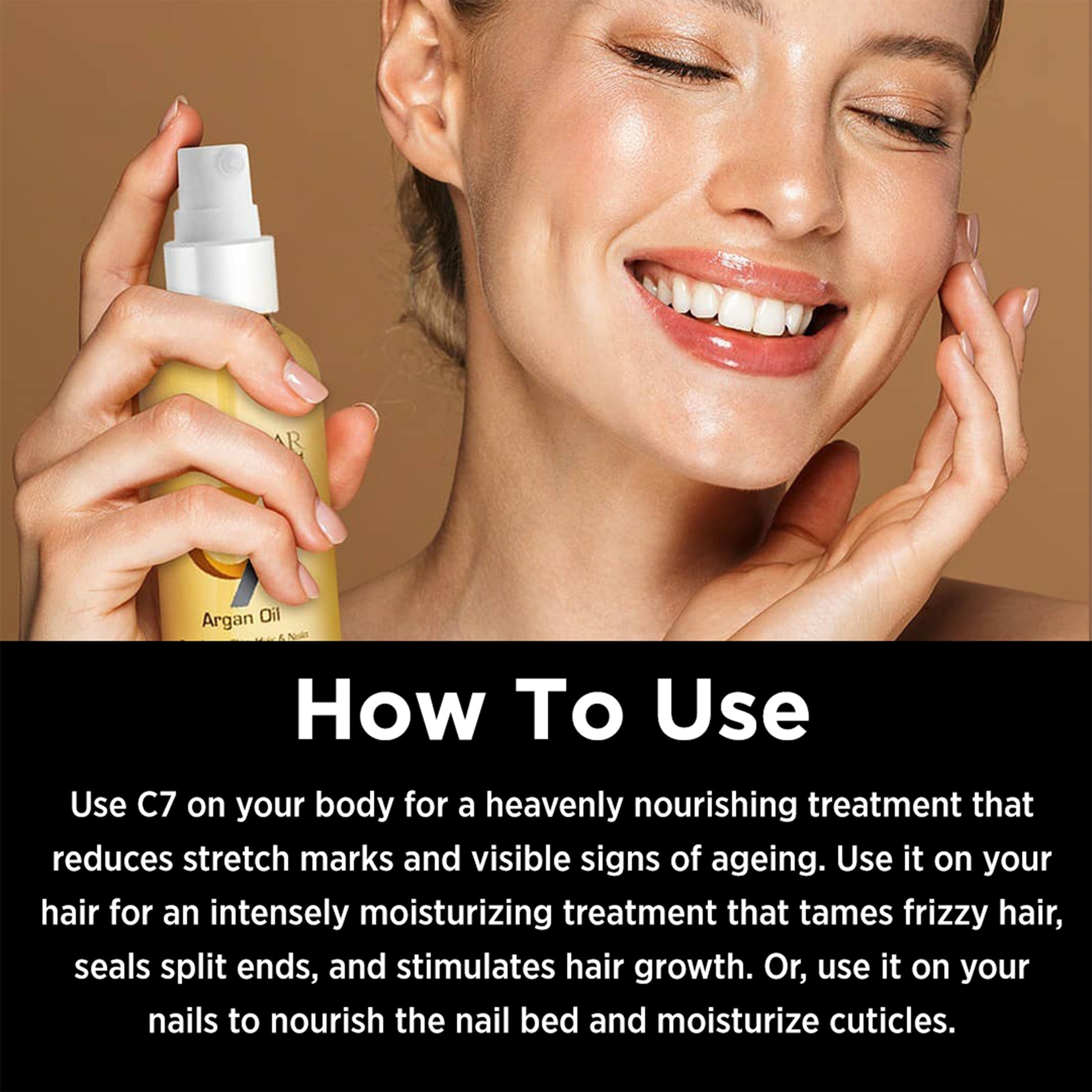 - Allow this swift-absorbing and exceptional argan oil mixture to become a staple in your skin, hair, and nails, offering an intensely revitalizing and restorative experience.