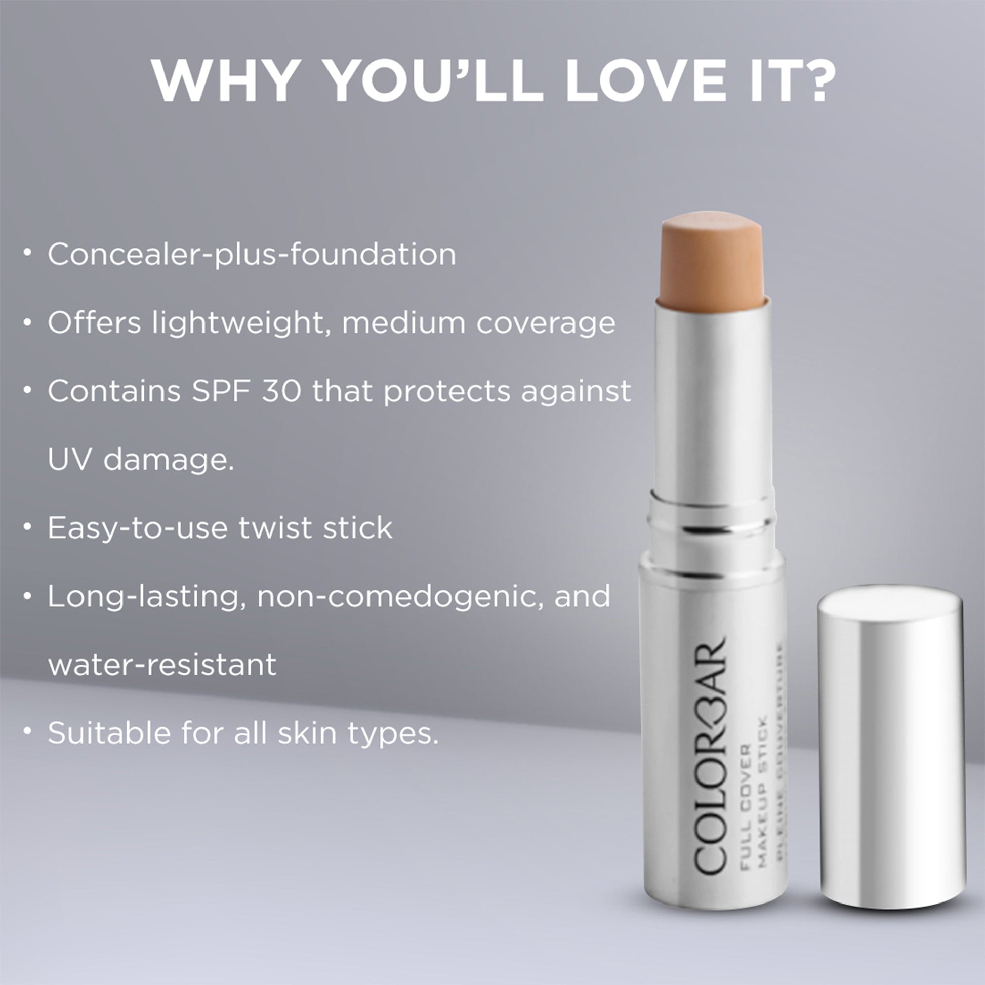 Achieve a perfect complexion with just a twist of our full cover makeup stick.