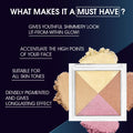 The Fantasy Shimmer Highlighter palette is a favored selection. It effortlessly amplifies your makeup with a luminous glow. Ideal for every skin tone. This feather-light highlighter palette imparts a brilliant & dewy finish. The skin-enhancing formula contains ultra-fine pearls that meld seamlessly with your skin, offering a natural radiance. It is a multifaceted shimmer highlighter suitable for both body and face. Elevate your highlighter game effortlessly. Our vegan formulation is packed with glow-enhancing ingredients.