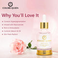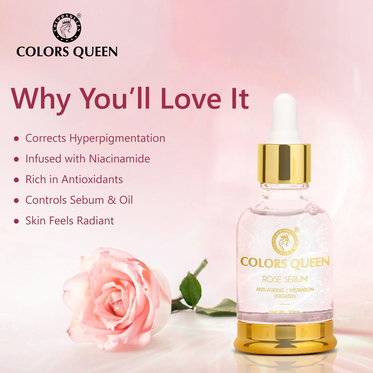 - Colors Queen face serum for radiant skin is available in three variations: Aloe Vera, Vitamin C, and Rose.
