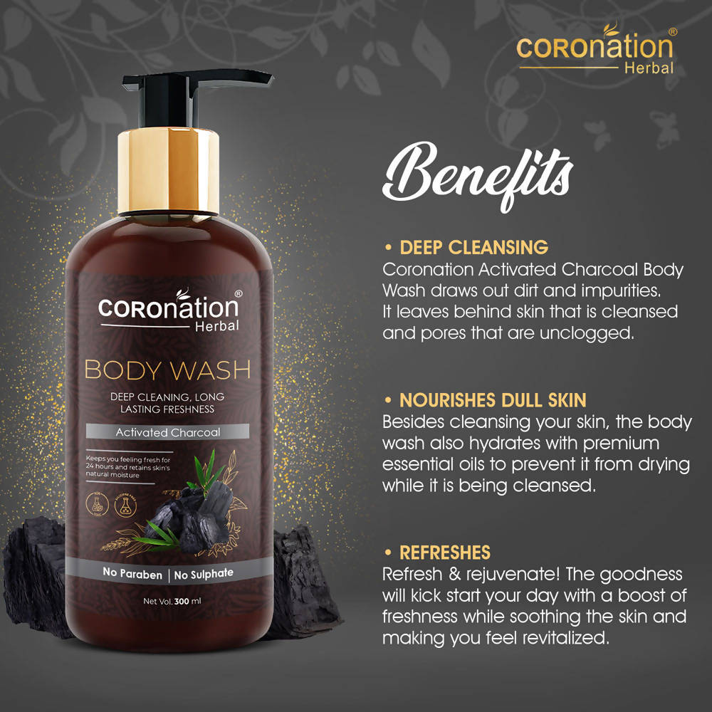 - DEEP CLEANSING: COROnation Activated Charcoal Body Wash draws out dirt and impurities. It leaves behind skin that is cleansed and pores that are unclogged.