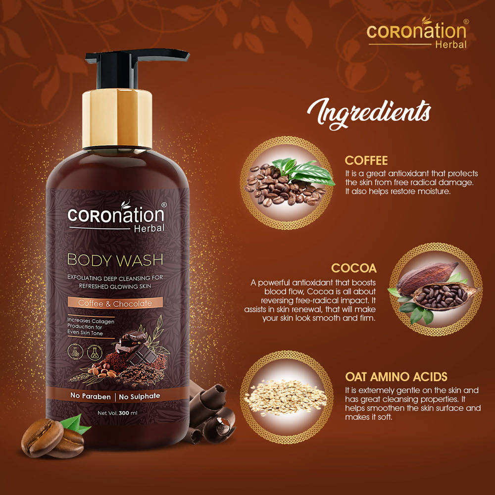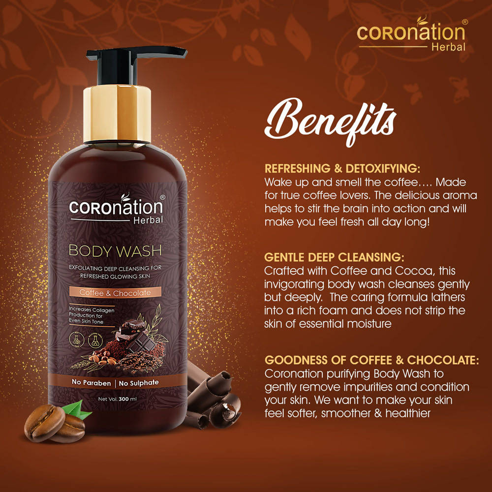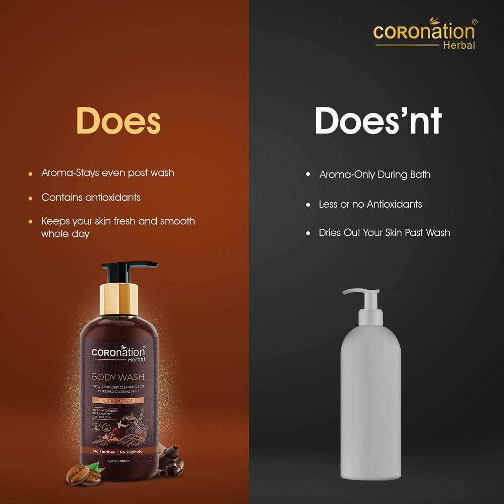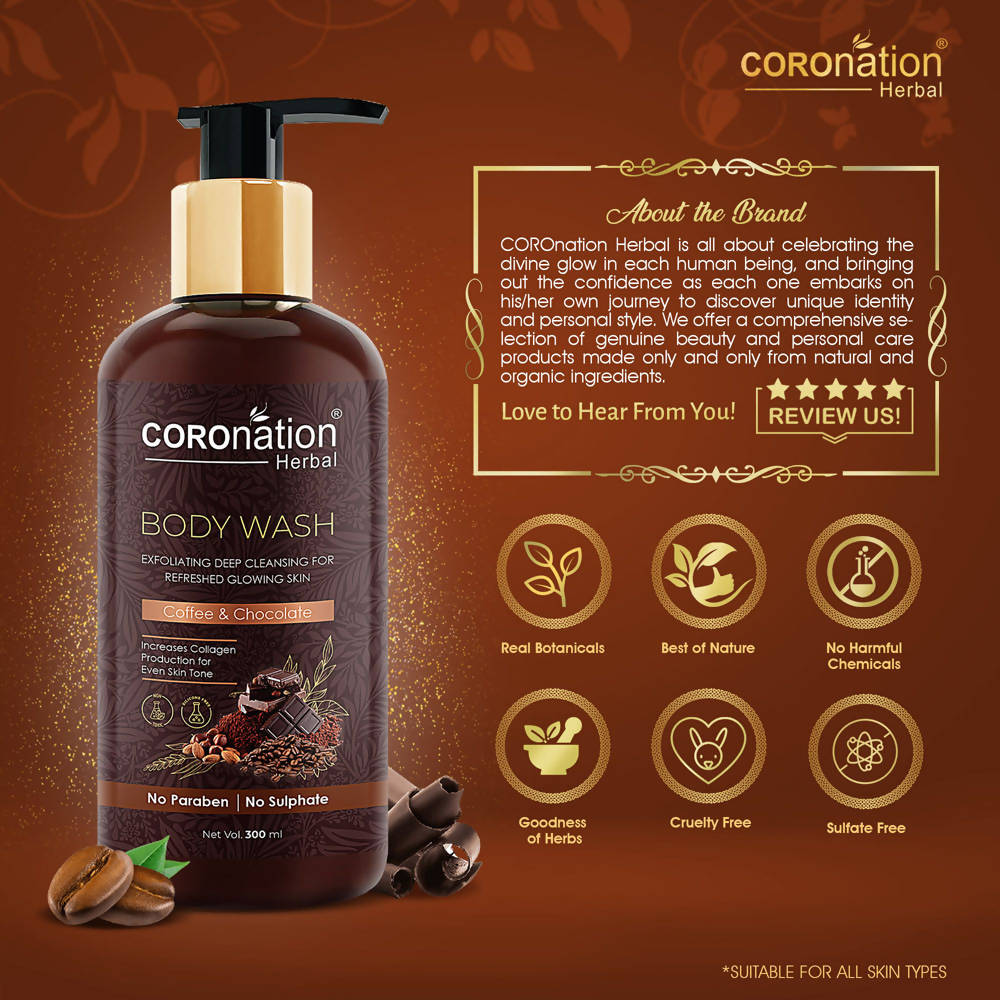 COROnation Herbal Coffee and Chocolate Body Wash effectively purifies by eliminating excess oil and impurities, erasing facial dullness. Natural caffeine diminishes puffiness, combats free radicals, and balances skin tone. The invigorating scent of Cocoa provides a soothing experience for both body and mind. This shower gel not only cleanses and softens your skin but also elevates your mood. The included moisturizer ensures skin is left soft and smooth.